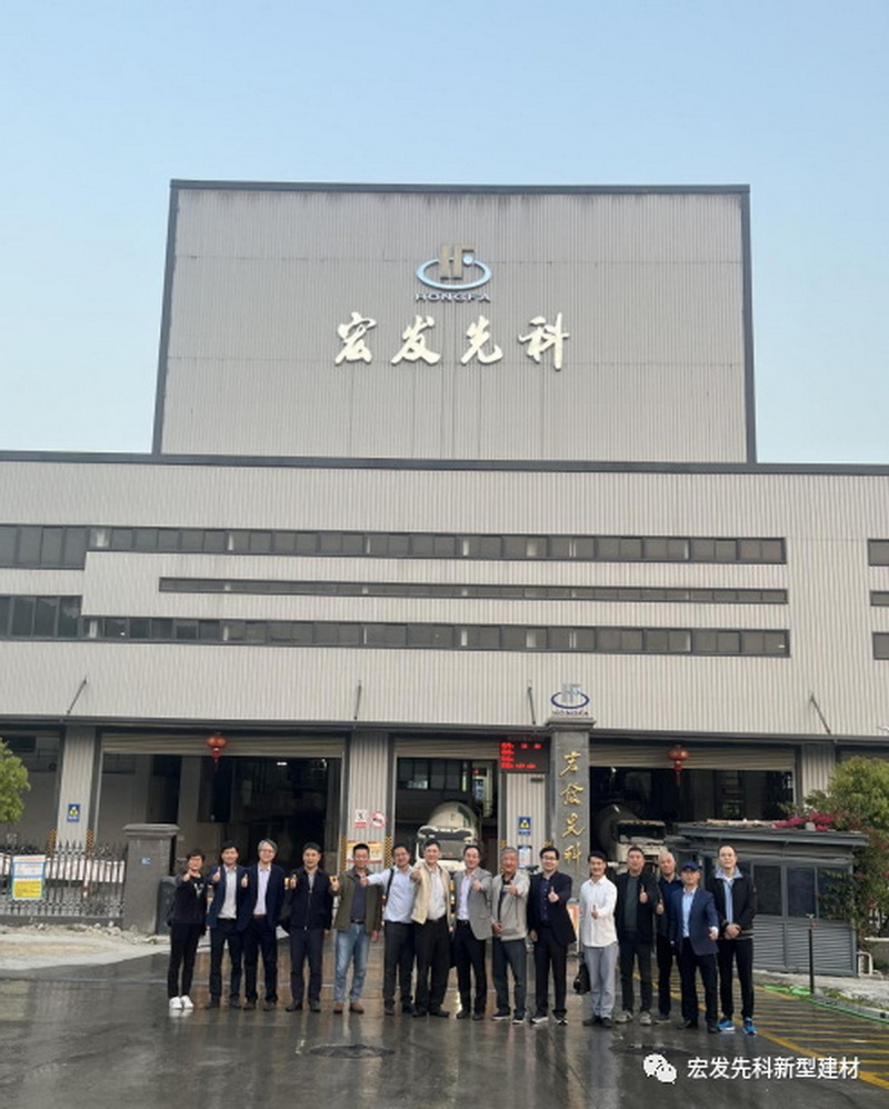 訪談會結束后,廈門宏發(fā)先科新型建材有限公司董事長廖惠航帶領各位老師和院友們一起參觀了公司,并詳細介紹公司在實驗、研發(fā)和生產等各方面的情況。最后,廈門宏發(fā)先科新型建材有限公司董事長廖惠航、洪明輝院士等一行人在公司門口合影留念,此次活動圓滿結束。